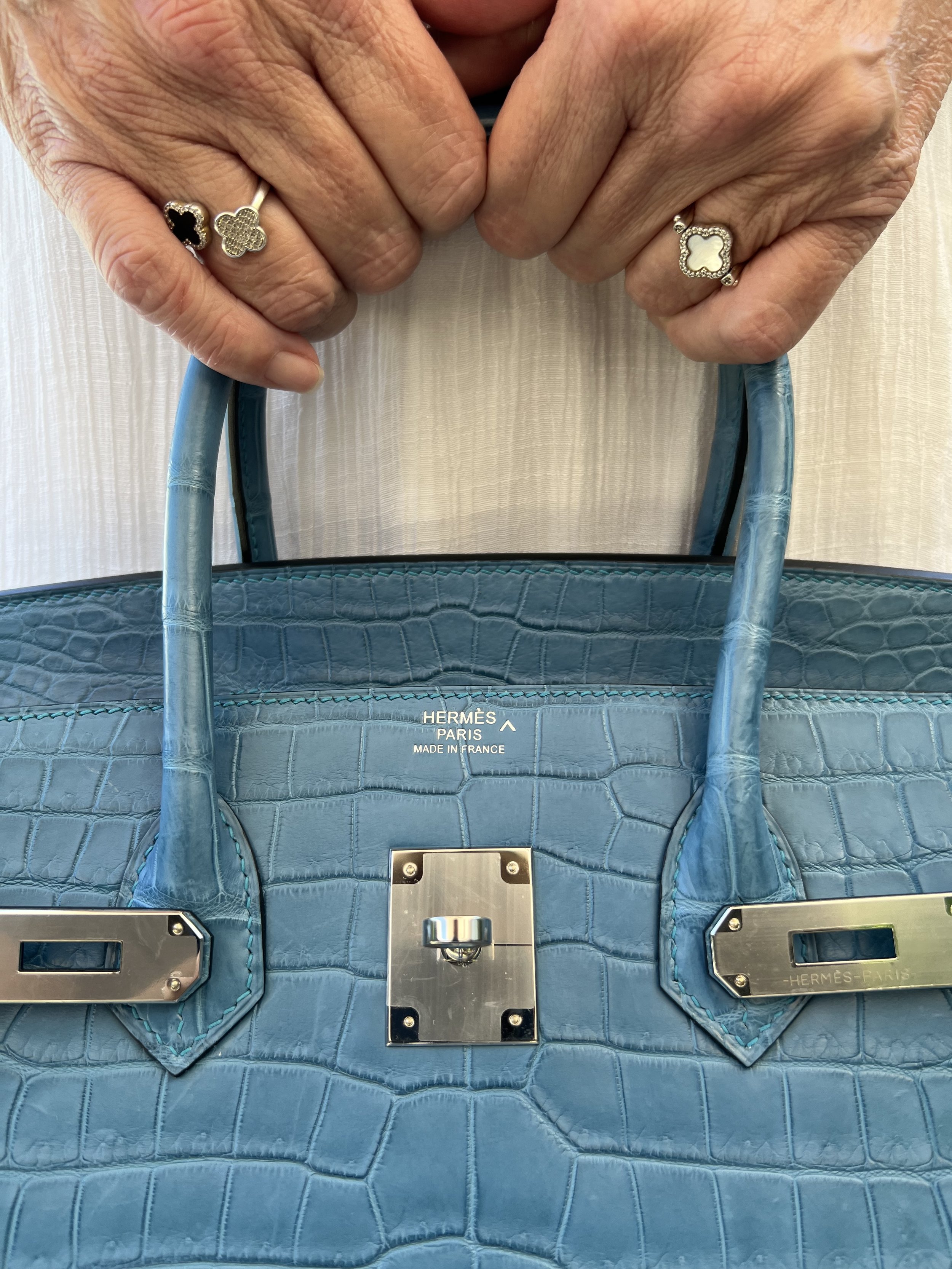 Birkin 25 Sellier in Fauve. Genuine Matte crocodile skin with silver hardware